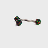 ITEM - Internally Threaded Barbell with highest quality stunning Fire Lab opals, Watch them catch the light and show all the beautiful opal fire colors.
