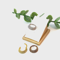 Triple Layer stacked with CZ stones in a clear crystal prong set.