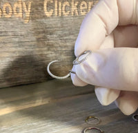 This gorgeous clicker is encased in CZ Stones which help it to sparkle no matter the angle it's viewed at! Recommended for Conch, Septum, Helix, Daith, Rook, Lip, or Nose-Piercings.