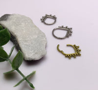 Our unisex titanium clicker with hand-crafted beads is a very unique looking piercing! Recommended for septums and daiths!