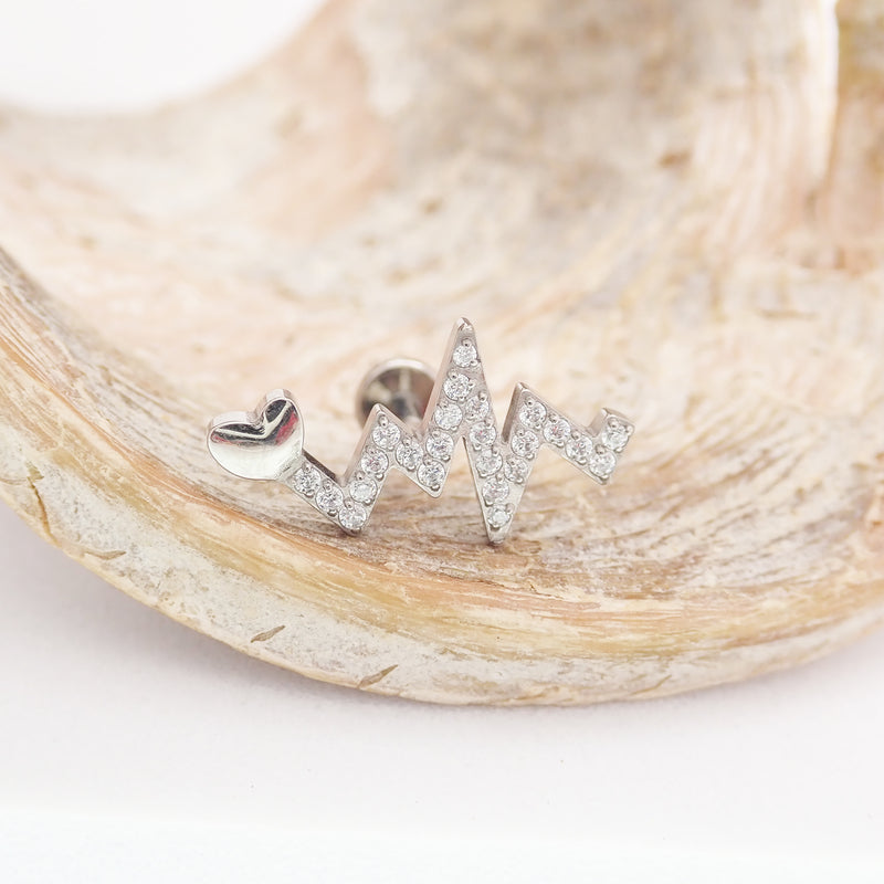 Heart Beat Titanium Flatback/ Labret Piercing 18g, 16g, 14g