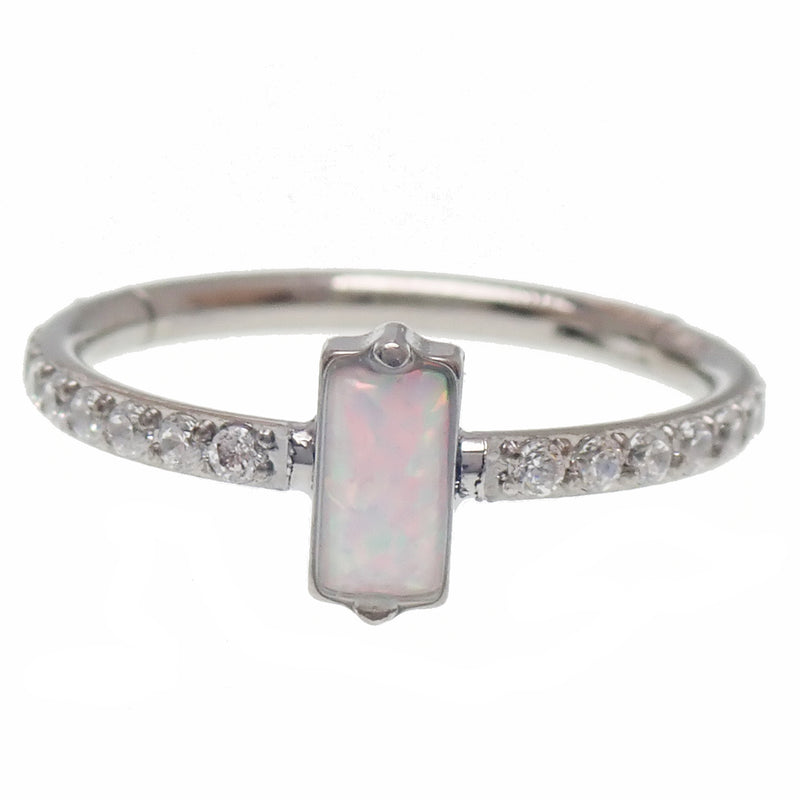 Rectangular White Opal CZ Titanium Clicker 16g 11mm
