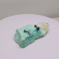 Amethyst / Cloudy Moonstone Titanium Flatback Piercing 14g