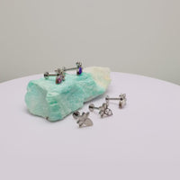 A pretty lotus flower with a tear drop shaped Opal, CZ, or regular titanium design to show off your piercings!