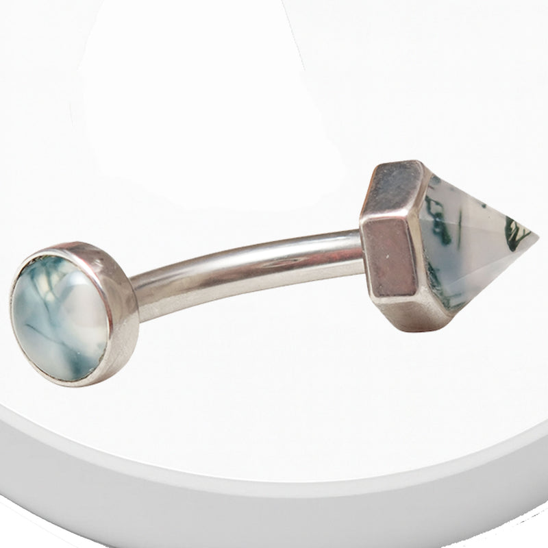 16G Moss Agate Curved Barbell – Implant Grade Titanium