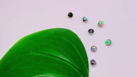 Attachment made of ASTM F136 surgical implant-grade titanium, suitable for human implant body piercing. Stones held in place using a secure bezel setting.