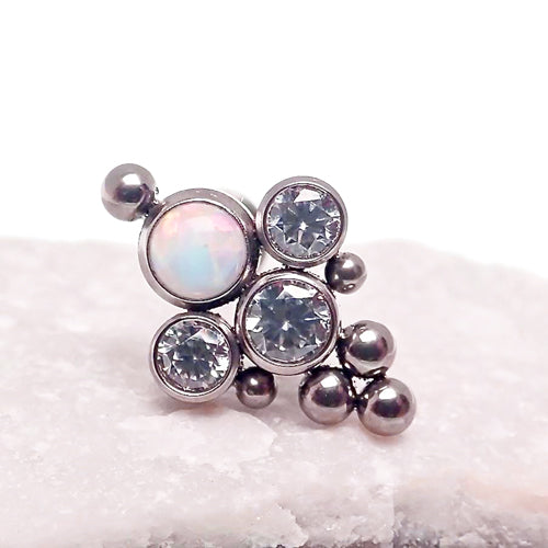 Beaded Opal & Crystal Cluster Flatback Piercing 18g, 16g, 14g
