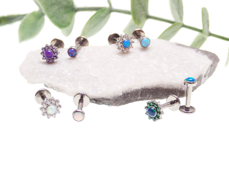 Flower & Flat Top Opal & CZ Stone Pair 14g, 16g, 18g